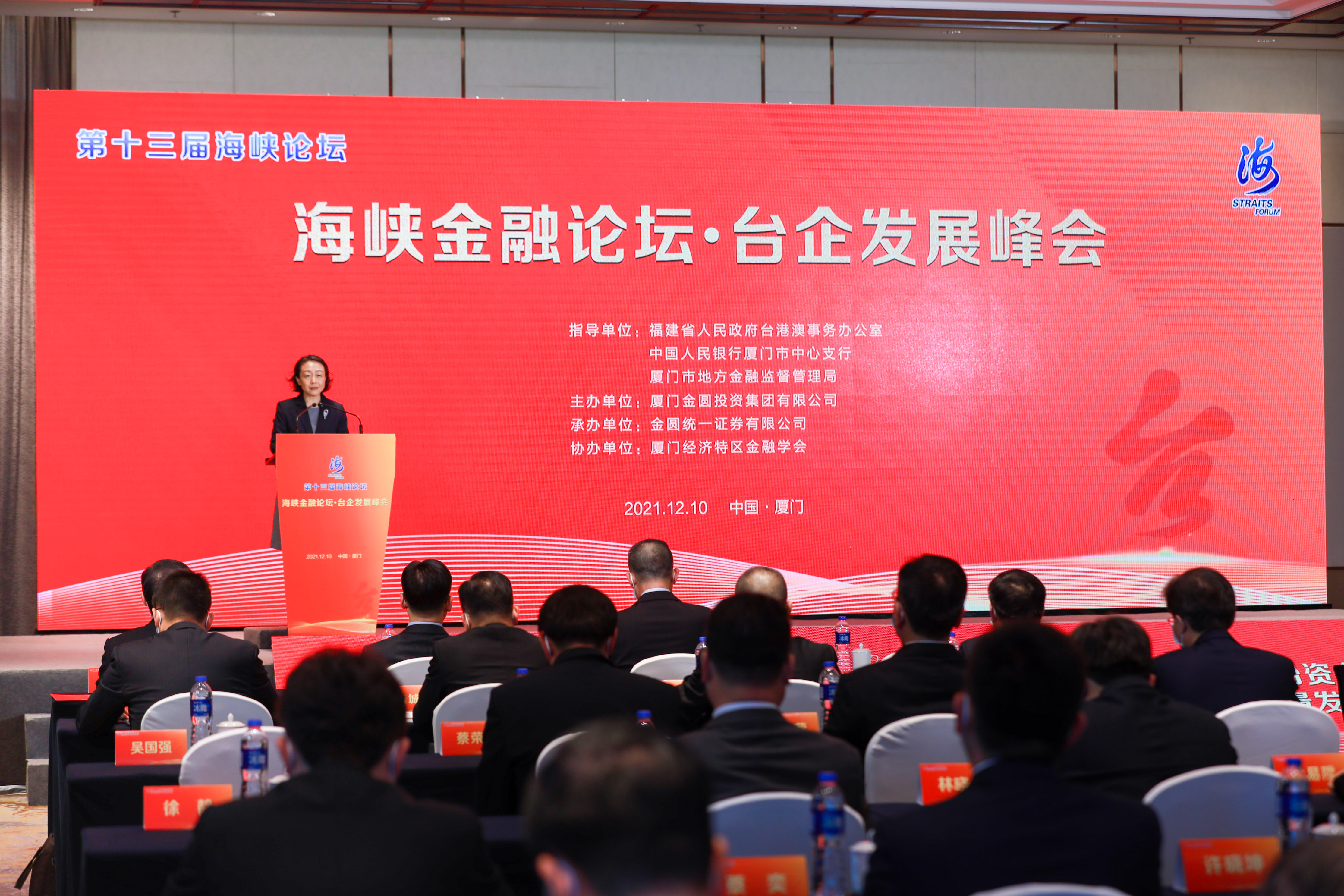 12月10日,第十三届海峡论坛“海峡金融论坛 • 台企发展峰会”在厦门举办,各级领导、行业专家、金融业者、台资企业齐聚一堂,重点聚焦促进台资企业资本市场高质量发展。福建省委常委、副省长郭宁宁,国台办经济局副局长、一级巡视员陈斌华等出席论坛并致辞,厦门市委常委、常务副市长李辉跃出席论坛。