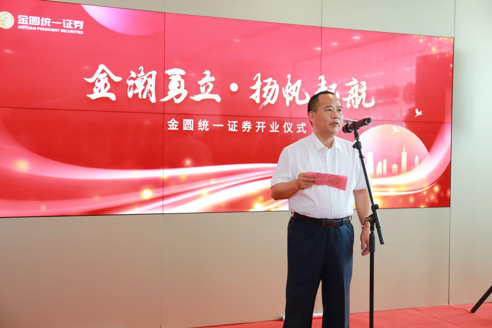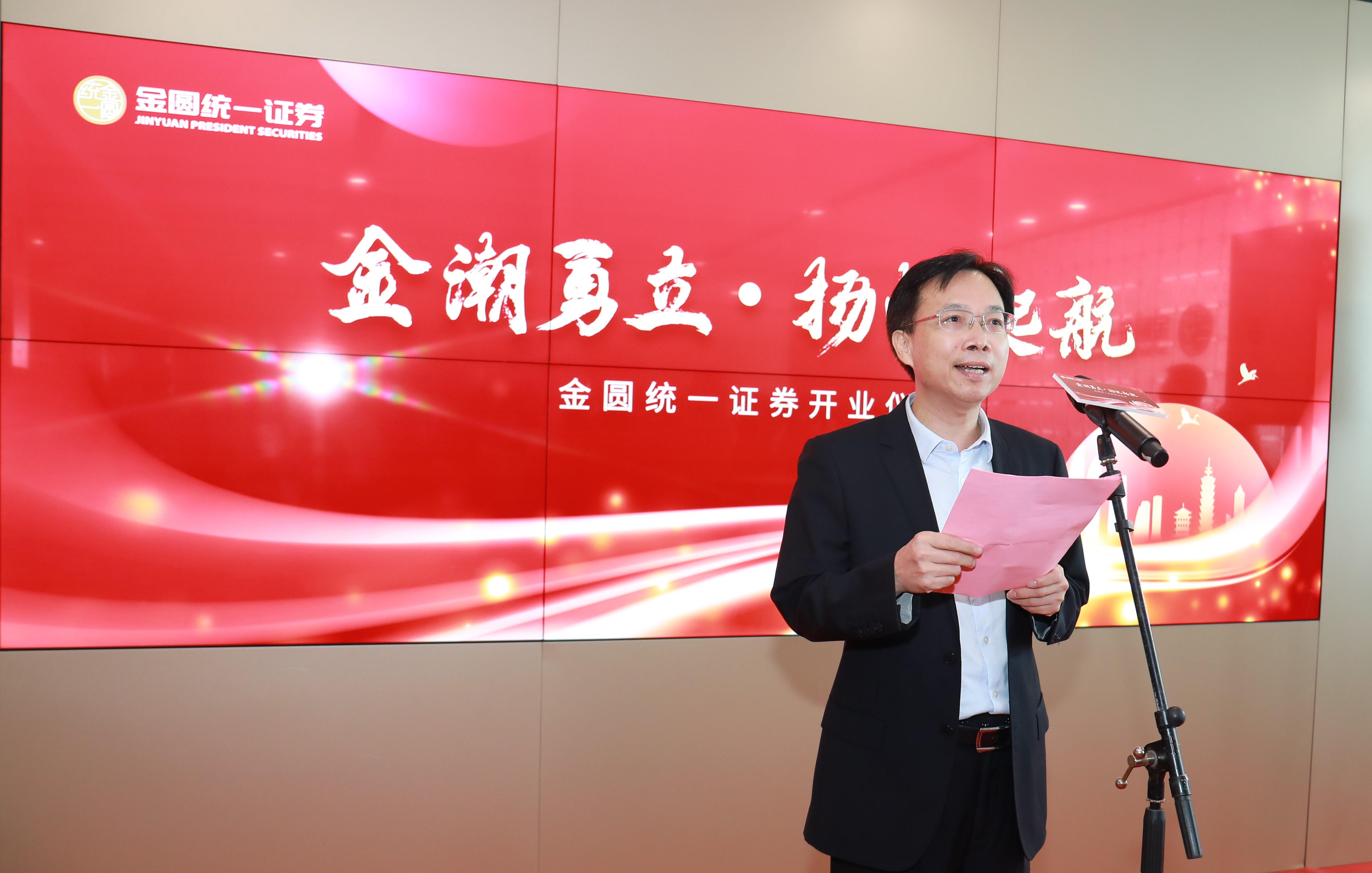 财政局黄珠龙局长在致辞中表示了对金圆统一证券的殷切关怀,希望金圆统一证券充分发挥两岸特有的资源优势,为厦门福建经济发展、为大陆台企提供特色优质的证券金融服务,为促进两岸融合发展做出新的贡献。