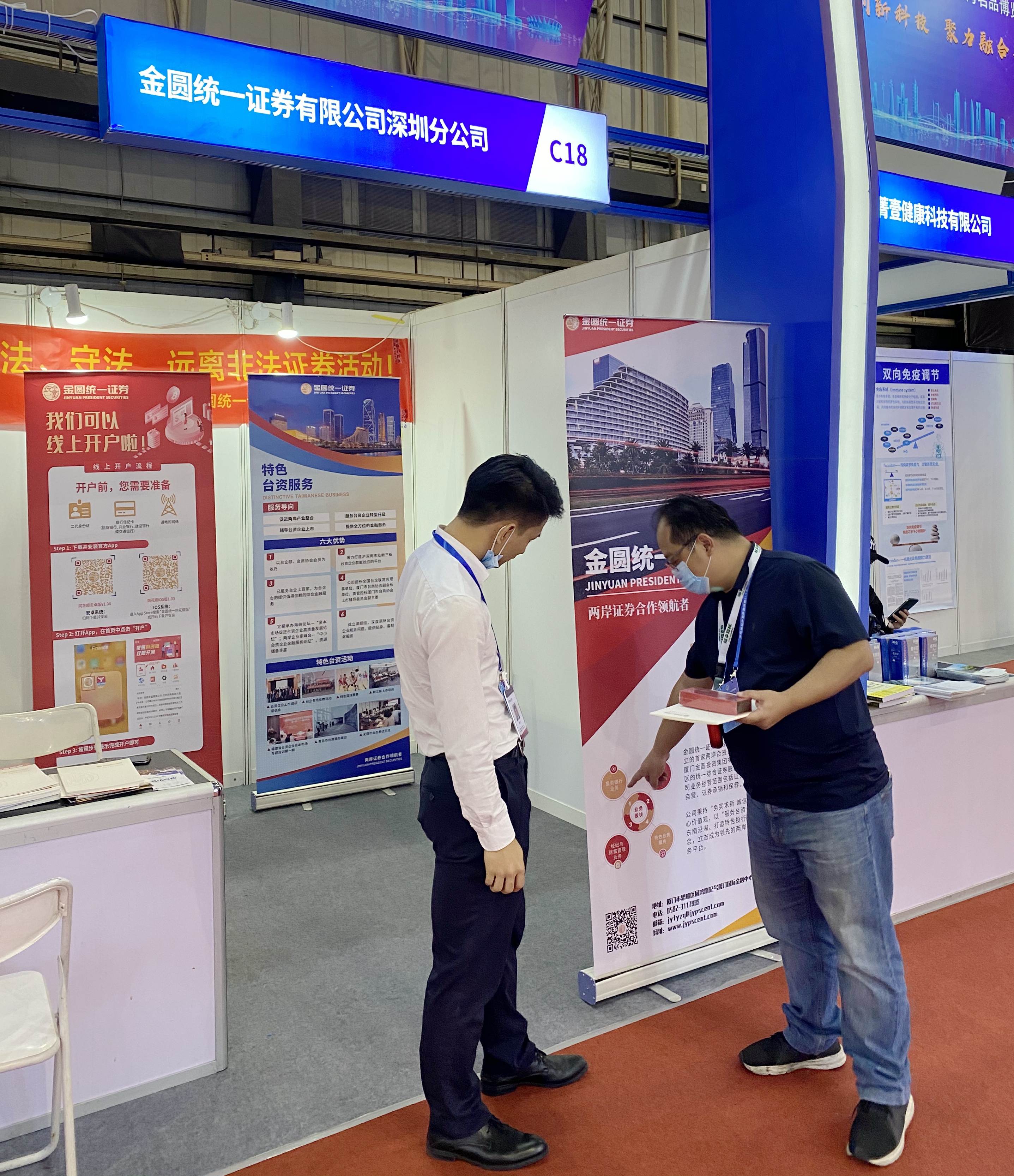 此次展会以“聚焦创新科技 聚力融合共赢”为主题,旨在为海峡两岸搭建产业合作平台。金圆统一证券与450余家台资企业同台亮相,点燃了现场观展群众们的热情。