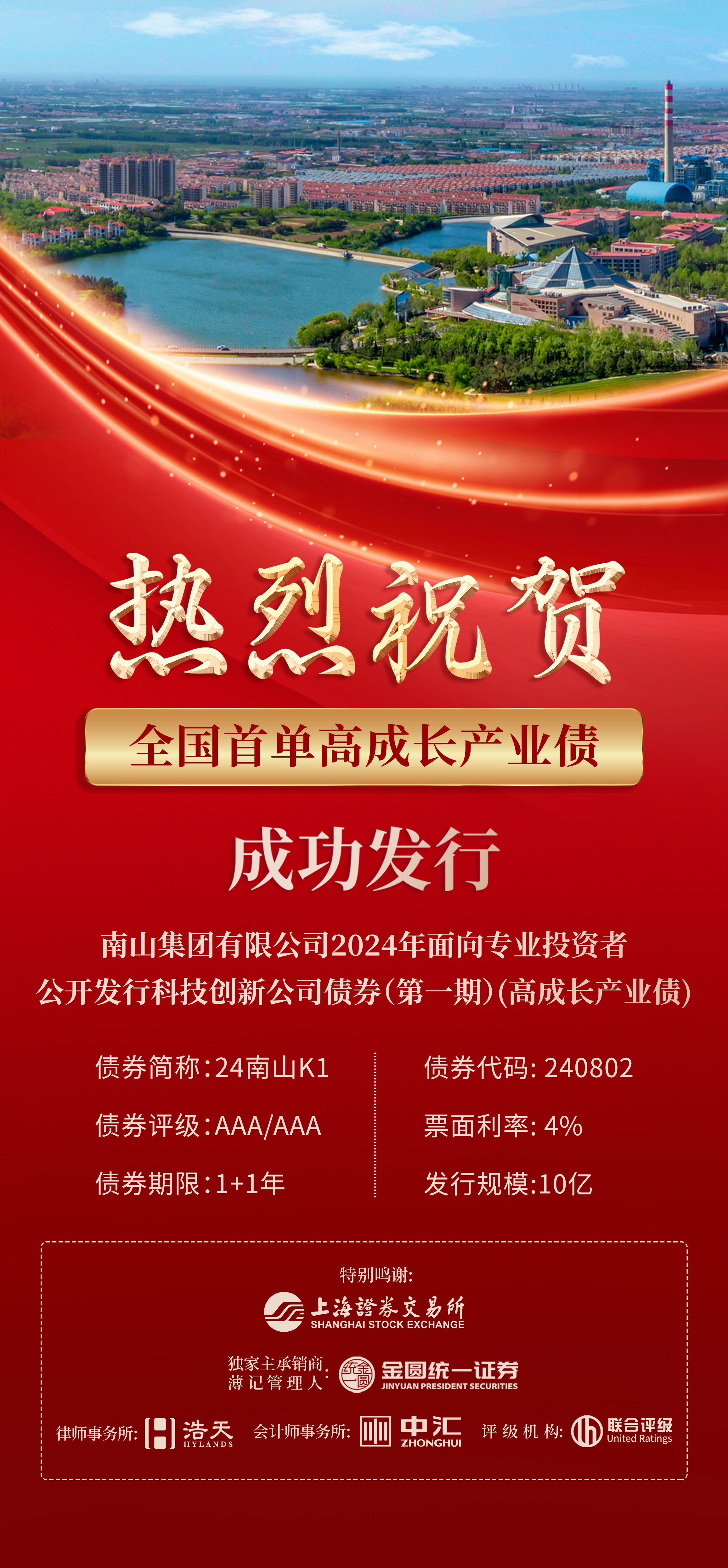 南山集团相关负责人表示,金圆统一证券此前已参与南山集团多期债券承销工作,帮助企业进行多样化的债券融资,其专业服务能力深受认可,值得信赖。
